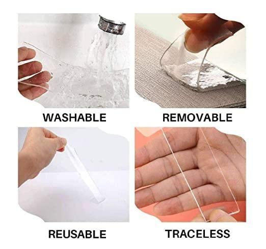 Product Name: Double Sided Adhesive Tape-Tape Heavy Duty Nano Heavy Duty( Pack of 2) Package Contains: It Has 2 Piece Of Adhesive Tape Product Dimensiosn(L x B x H in cm):-15 x 10 x 8 cm Material: Plastic Color: Colour as per availability Combo/Set Of: Pack of 2 Additional Information: ?EASY TO USE & REMOVABLE?The length of this double-sided tape is 10FT, 1.18inches wide and 0.08 inches thick,you can easily cut the tape to any size you need. Very easy to remove and leave no residue. Note: To avoid the possible damage, we don't recommed using this tape on easily damaged surfaces. ?WASHABLE & REUSABLE & TRACELESS?This nano gel tape can be used repeatedly,and its material is washable.When it gets dirty, wash it with warm water,and dry it,The tape will regain its stickiness.If you want to remove the tape, slowly tear it from the surface,no traces will be left on the surface of the object. ?STRONG VISCOSITY?The adhesive tape USES new nanotechnology and friendly materials. It is sturdy and durable but can easily be stretched and recycled,the clean and smooth surface holds up to 1 KG (2.2 LBS). ?MULTIPURPOSE ADHESIVE TAPE?This double-sided adhesive tape can be used to paste all kinds of objects, such as picture frames,ornaments,carpets,kitchen hooks,mobile phone holders, wall stickers. So u can use it in your home,office,outdoor and so on. Weight: 200